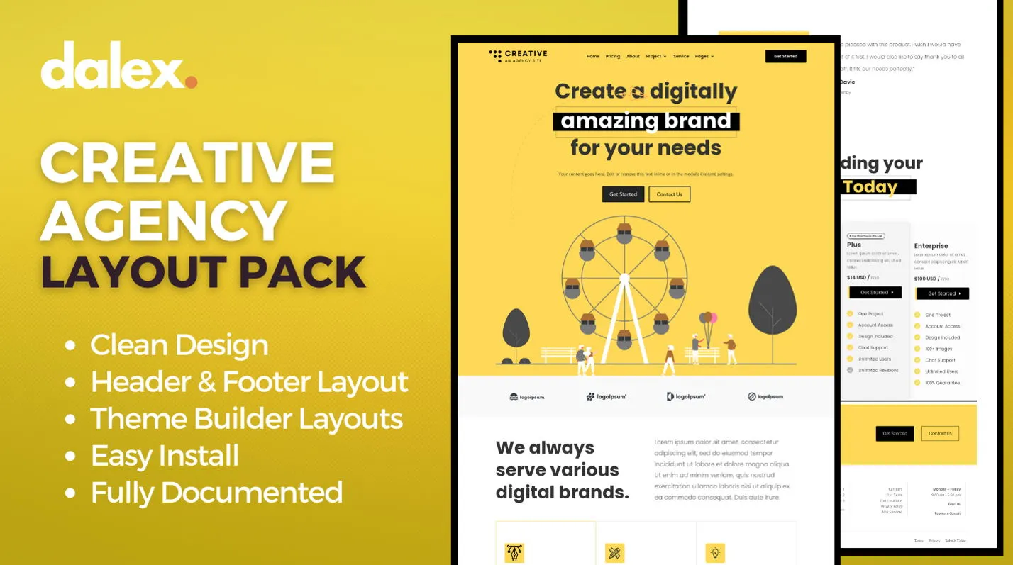 A bold and modern Divi layout pack designed for creative and digital marketing agencies to showcase services and portfolios.