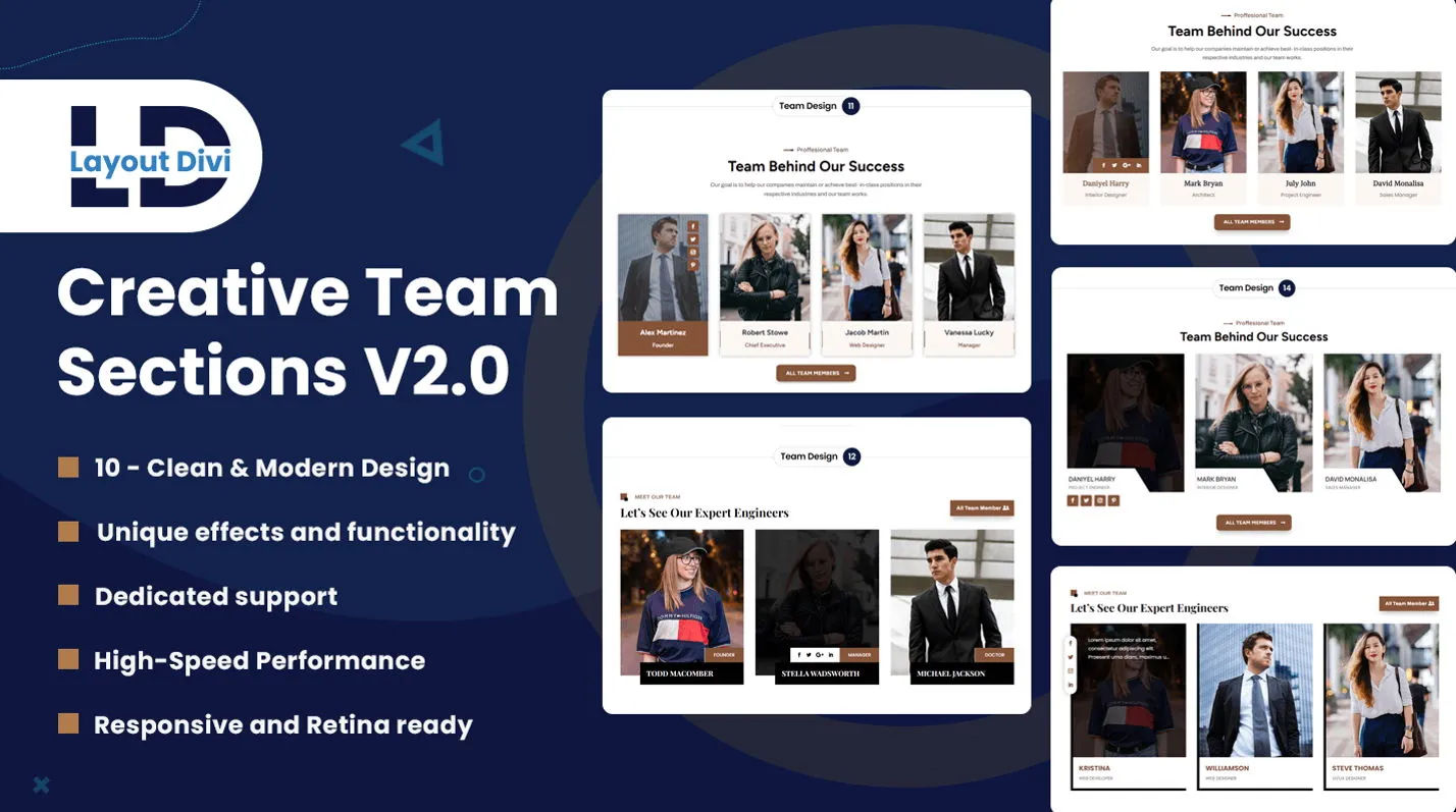 Divi Creative Team Section Pack – 10+ Unique & Stylish Designs for Every Website.