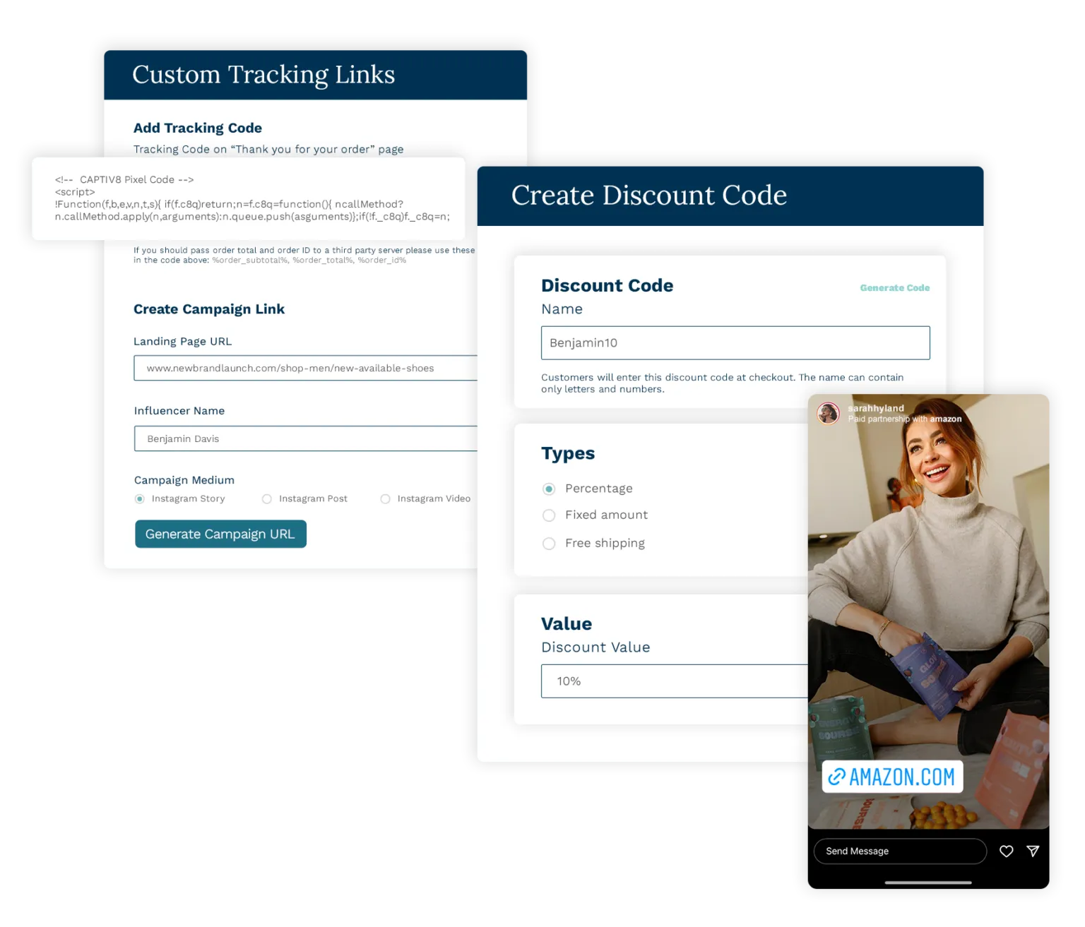 Create trackable, customized referral links and discount codes. Then, build a creator payment structure based on the performance metrics that are most important to you.