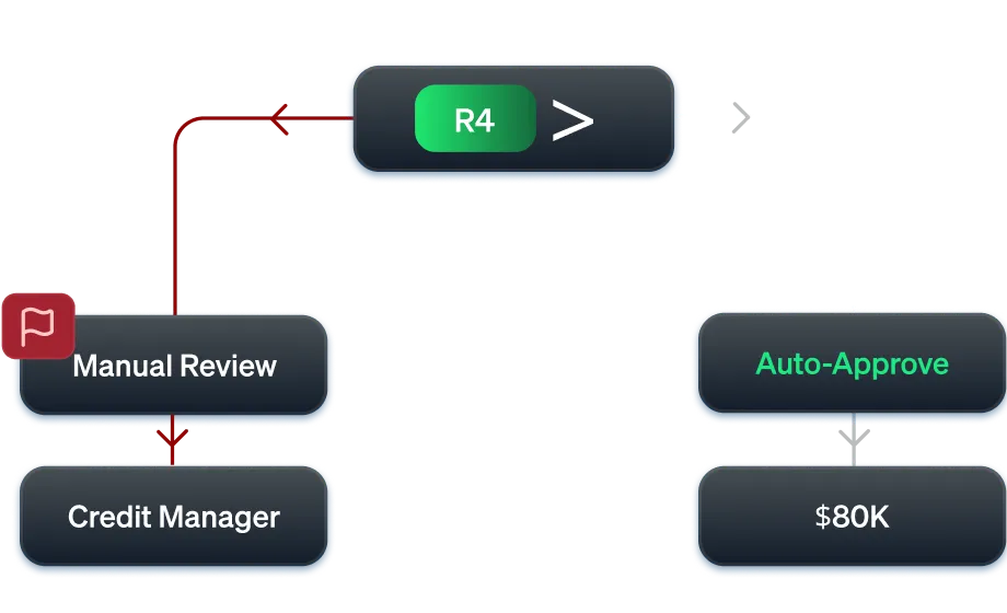 - Multi-Level Approval Workflow: Routes applications based on region, risk level, and customer tier.