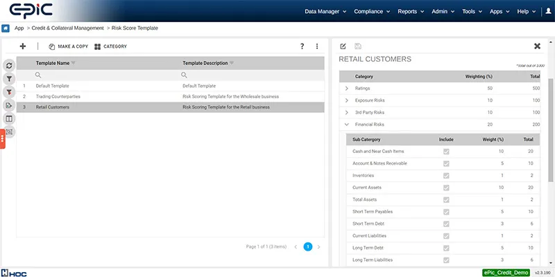 CPM utilizes EPIC’s power reporting engine to generate feature-rich and informative Excel reports for every credit data point in the system. CPM also comes with a set of intuitive and insightful dashboards, which are extremely useful in providing summarized and aggregated credit snapshots across multiple workflows. CPM also integrates seamlessly with third-party BI engines like Microsoft Power BI and Tableau. CPM provides users with a one-stop-shop for viewing and editing all credit risk-related information as well as all qualitative and quantitative parameters, for all external entities with which you do business.