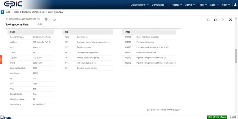 Credit Risk Management cannot work in an isolated silo. CPM has out-of-box capabilities to make REST API calls to data providers like DNB, Bloomberg and Experian. In addition, the credit request workflow is seamlessly integrated with the data captured from these data providers to get valuable information on the external entity being reviewed. CPM also provides outbound APIs for other systems in your enterprise to access CPM data and reports. The wealth of information captured by all inbound APIs is tagged and archived in EPIC’s data warehouse. All of this data is available via outbound APIs, thus allowing you to make CPM the one-stop-shop for all enterprise-wide risk data.