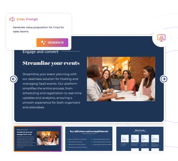 Criya’s AI Landing Page Generator enables B2B marketing and GTM teams to produce visually consistent landing pages and presentations from a short prompt and a few keywords. The tool ingests brand colors, writing style, and branded domain settings to ensure every asset adheres to brand guidelines without manual design work. Automated visual intelligence handles sizing, color contrast, alignment, spacing, and fonts to deliver pixel-precise layouts instantly, helping teams accelerate campaigns and maintain quality at scale. Users cite improved targeting and personalization, CRM connectivity, and engagement notifications that reveal when prospects interact with sales rooms, aiding timely follow-up and pipeline velocity. The product aligns with a broader Criya workflow that builds GTM assets quickly and supports campaigns for startups, enterprises, and services businesses.