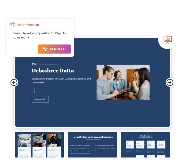 - Beyond presentations, the platform supports the generation of various marketing and sales assets.