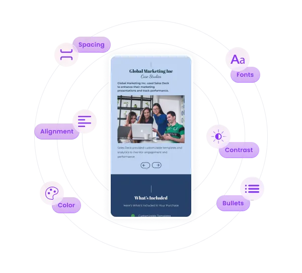 - Automatically transforms fragmented content, notes, and keywords into professional, visually formatted first drafts of sales decks, case studies, onboarding guides, and other go-to-market assets in seconds.