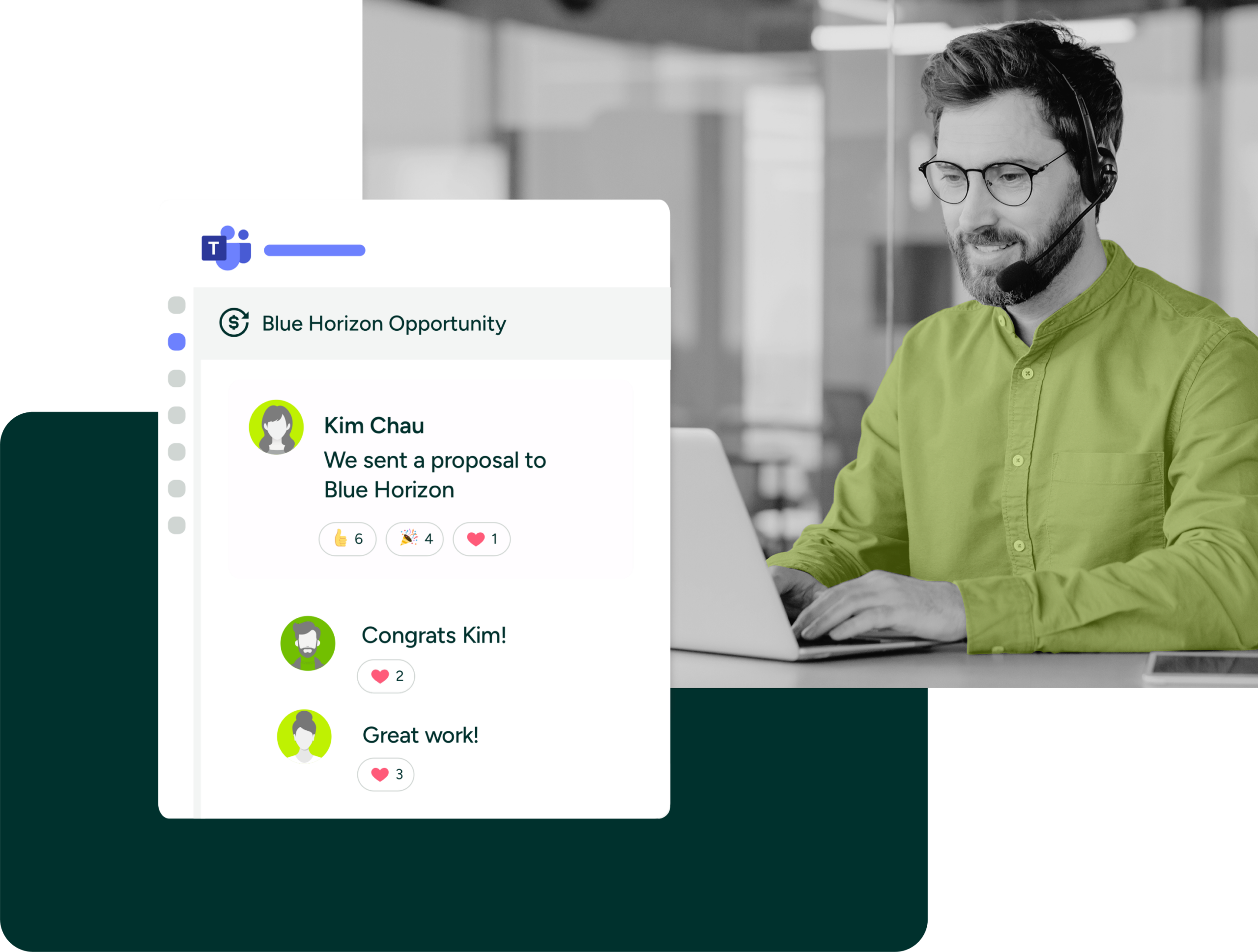 - **Improve planning with team collaboration: **Coordinate with your team on key opportunities.Search for Opportunities, Leads, and Cases without leaving Microsoft Teams.Gain real-time information on deal progressions.