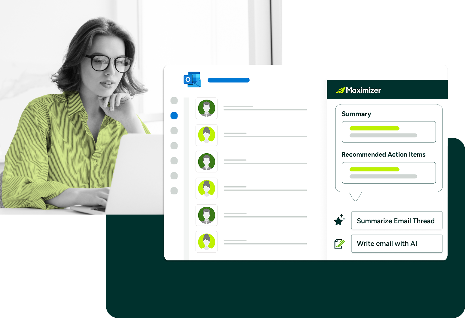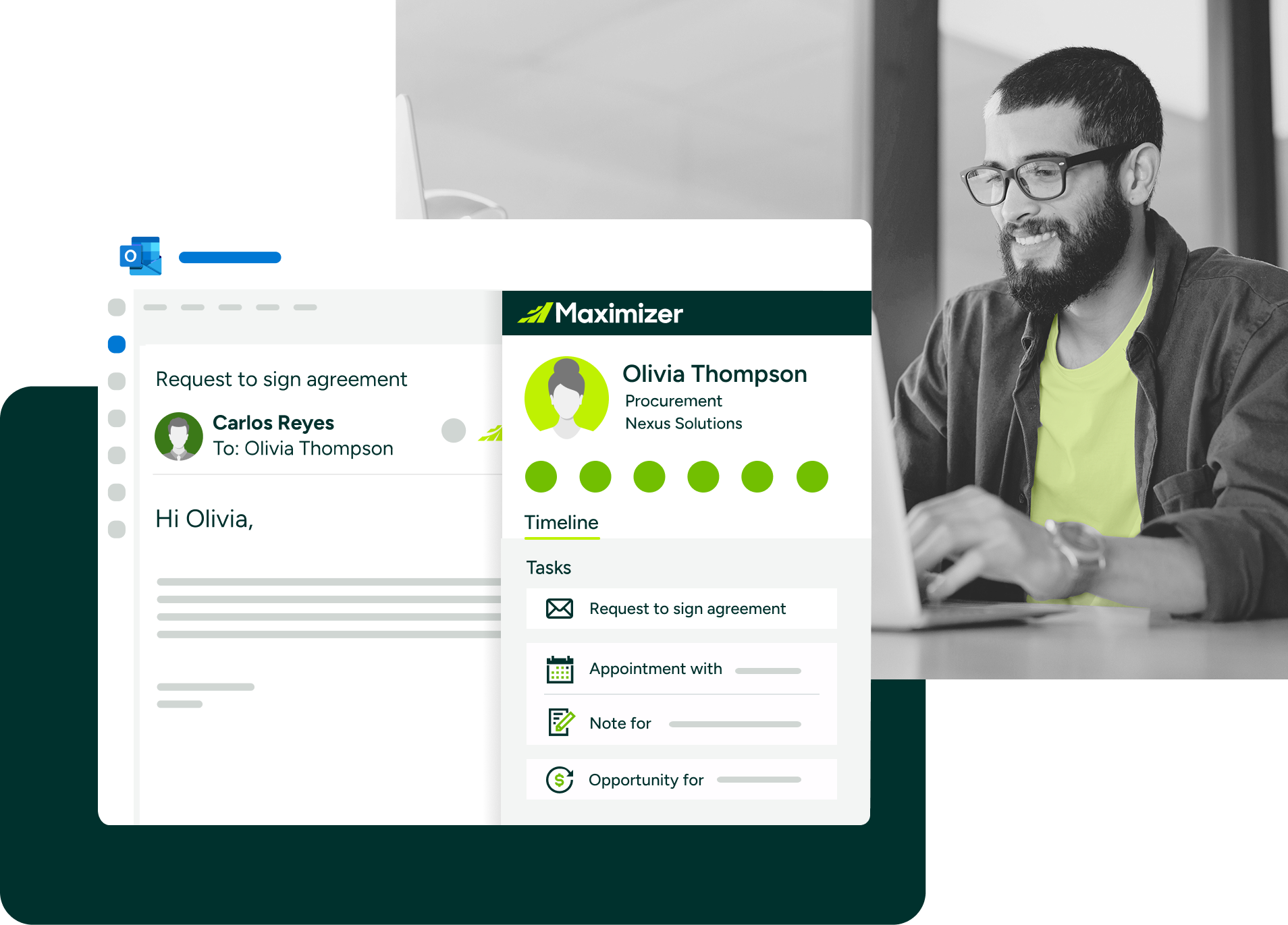 Get your work done right from your inbox Say goodbye to inefficient workflows and hello to a better way to work with Maximizer integrated directly into Outlook.