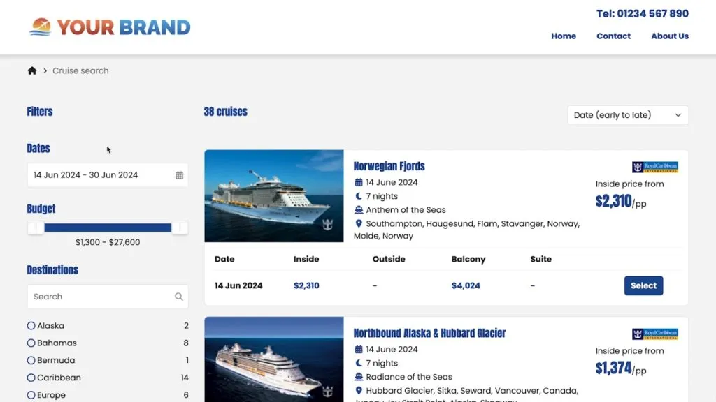 Features easy-to-navigate price grids and advanced filters, making it simple for customers to search, compare, and book cruises.
