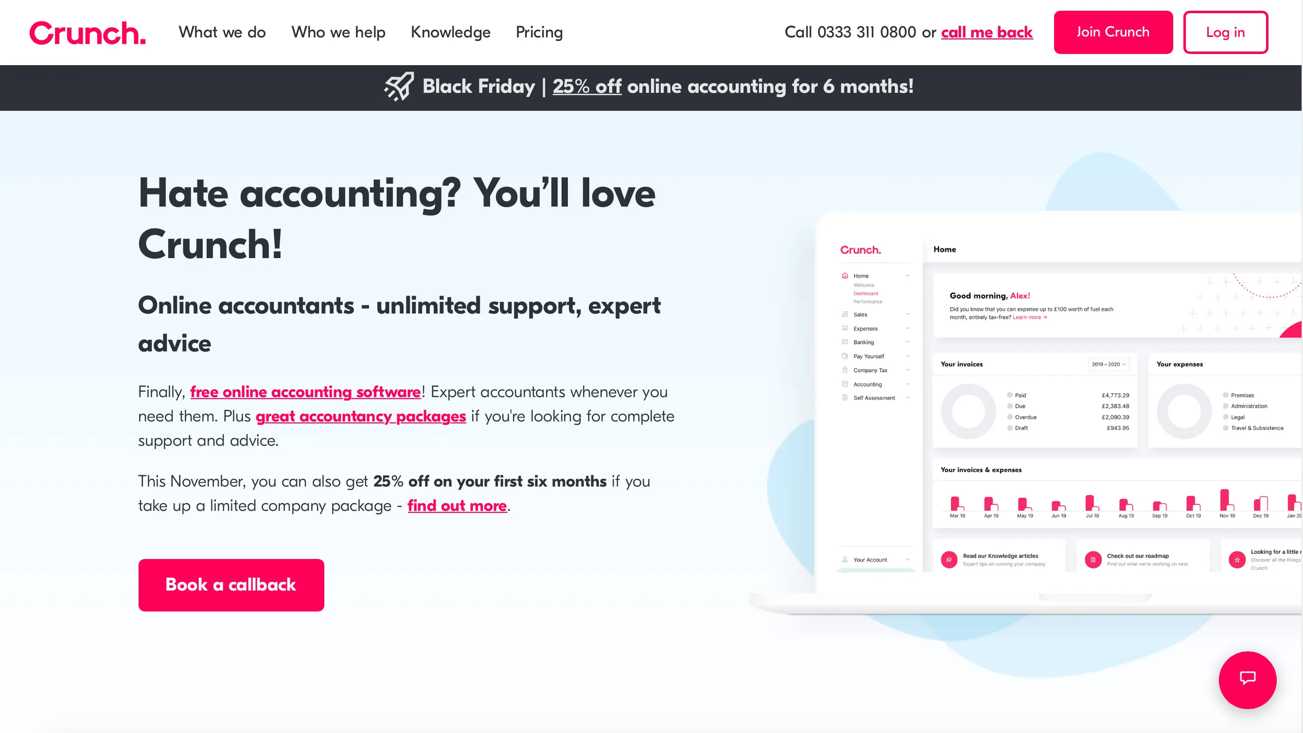 Crunch delivers an online accounting platform built for UK freelancers, sole traders, and limited companies that combines smart cloud software with access to certified accountants. It allows users to send invoices, track expenses, import bank feeds, and stay compliant with Making Tax Digital. The offering includes a perpetual free tier, with optional paid plans for more comprehensive support and services.