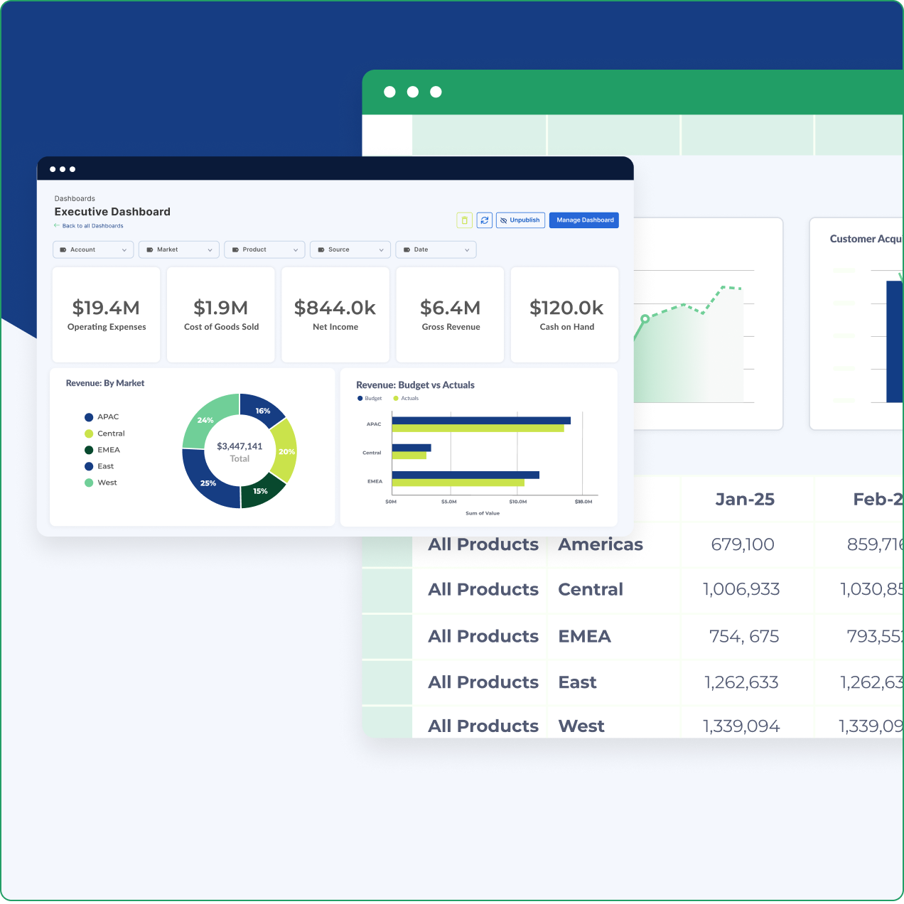 Centralized FP&A workspace for planning, reporting, analytics, workflows, and collaboration across finance teams.
