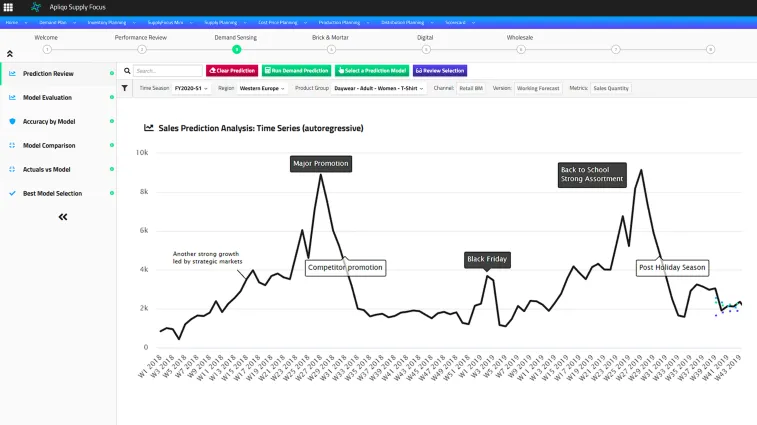 - **Demand planning powered by demand sensing: **Benefit from advanced analytics and automated base prediction to focus on underlying drivers, marketing initiatives and product launches.