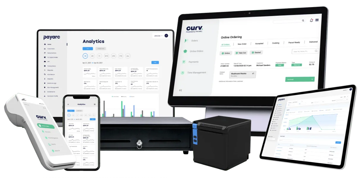 - **Hardware Bundles: **CURV is offered in bundles (terminals, cash drawer, printers, mobile handhelds) for quick deployment in restaurants and bars.