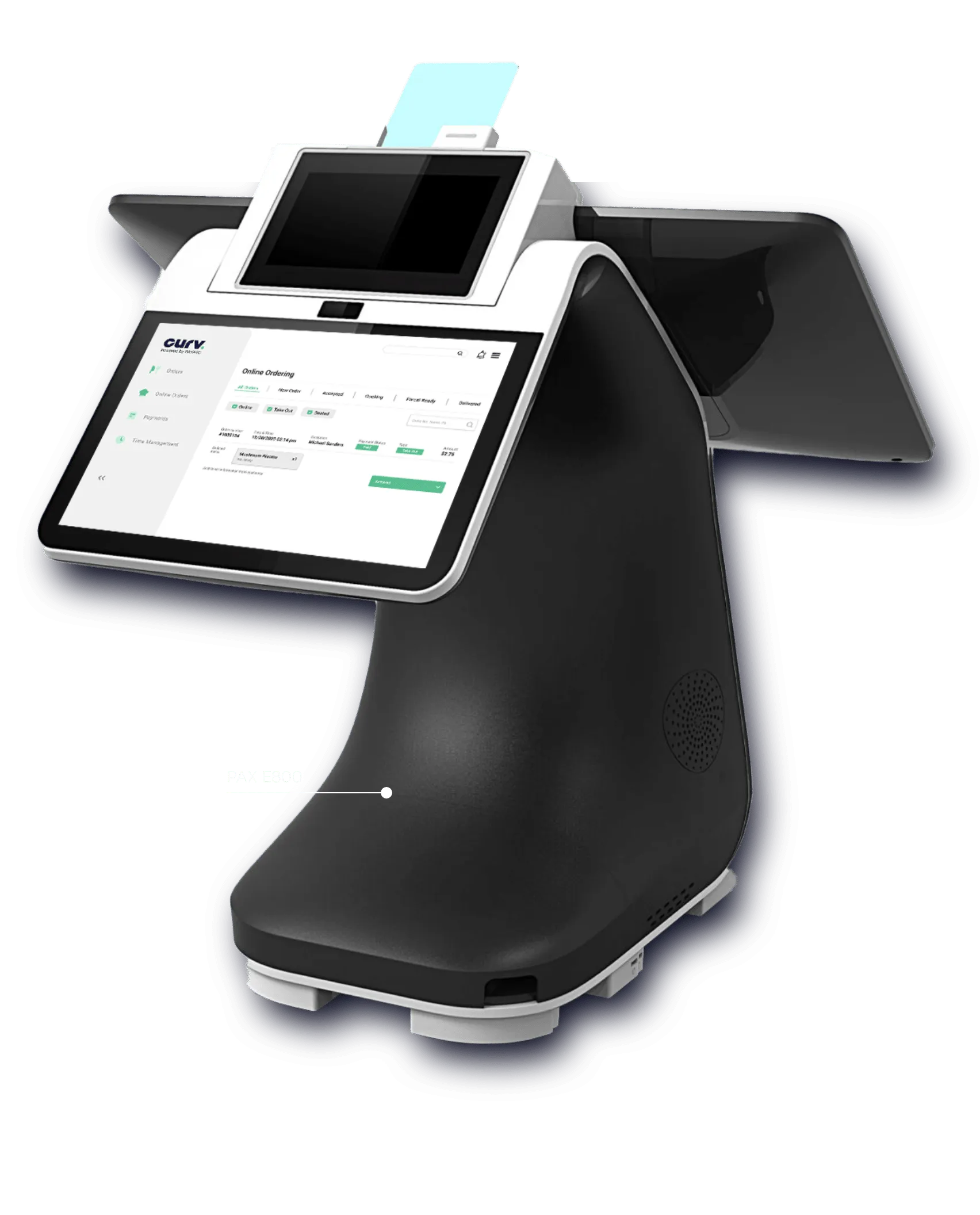 - **POS & Payments: **CURV provides full POS functionality with integrated payment acceptance on sleek terminals and companion mobile devices, enabling card-present and contactless transactions plus dual-screen customer displays.