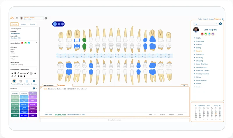 Curve Dental is a cloud-based platform for dental practices, offering charting, billing, imaging, and patient engagement in one solution.