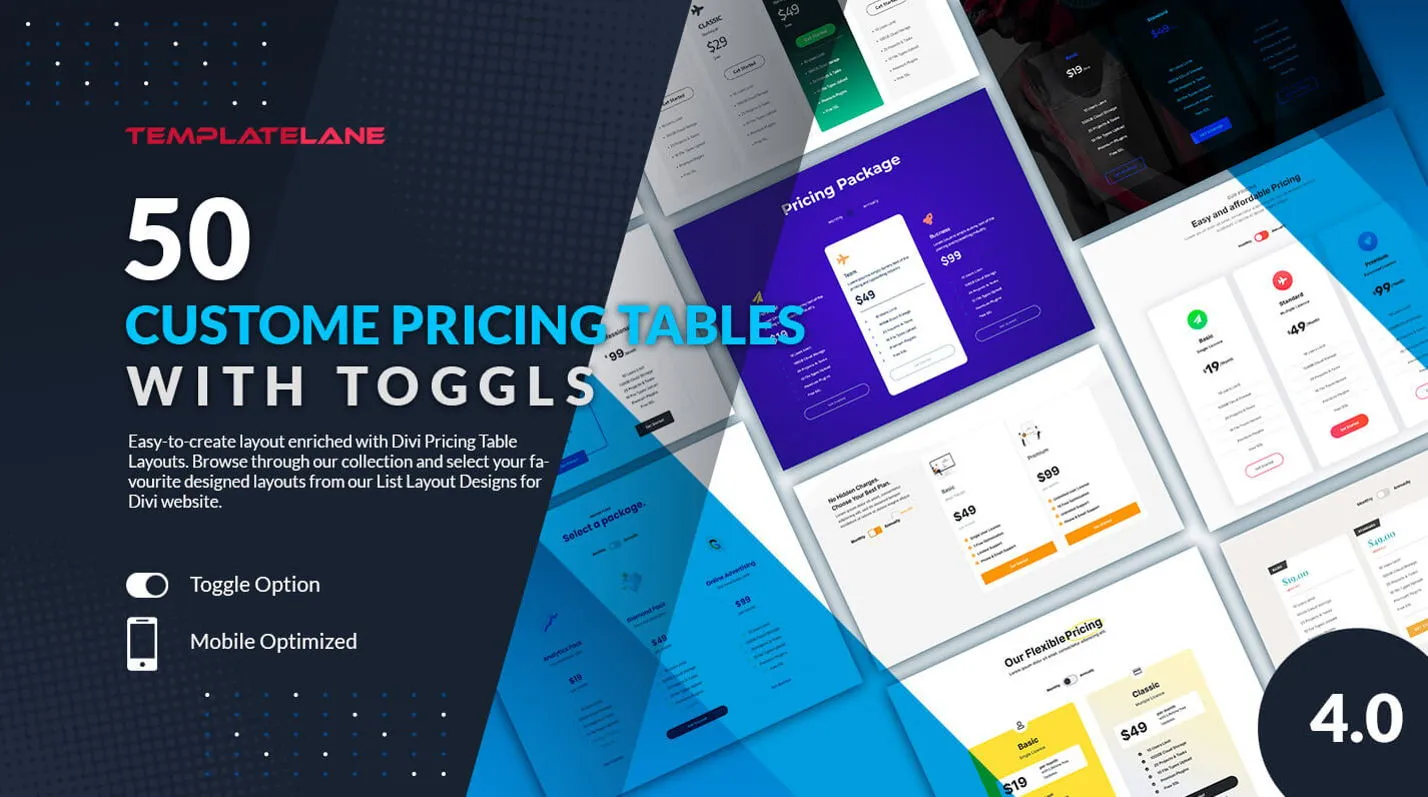 Modern and flexible pricing table layouts for Divi, designed to clearly present your plans and boost conversions.