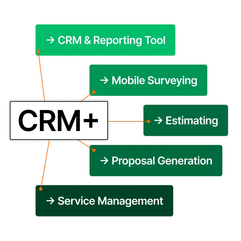 CRM+ streamlines sales cycles for contractors with reporting, estimating, proposals, and mobile surveying.