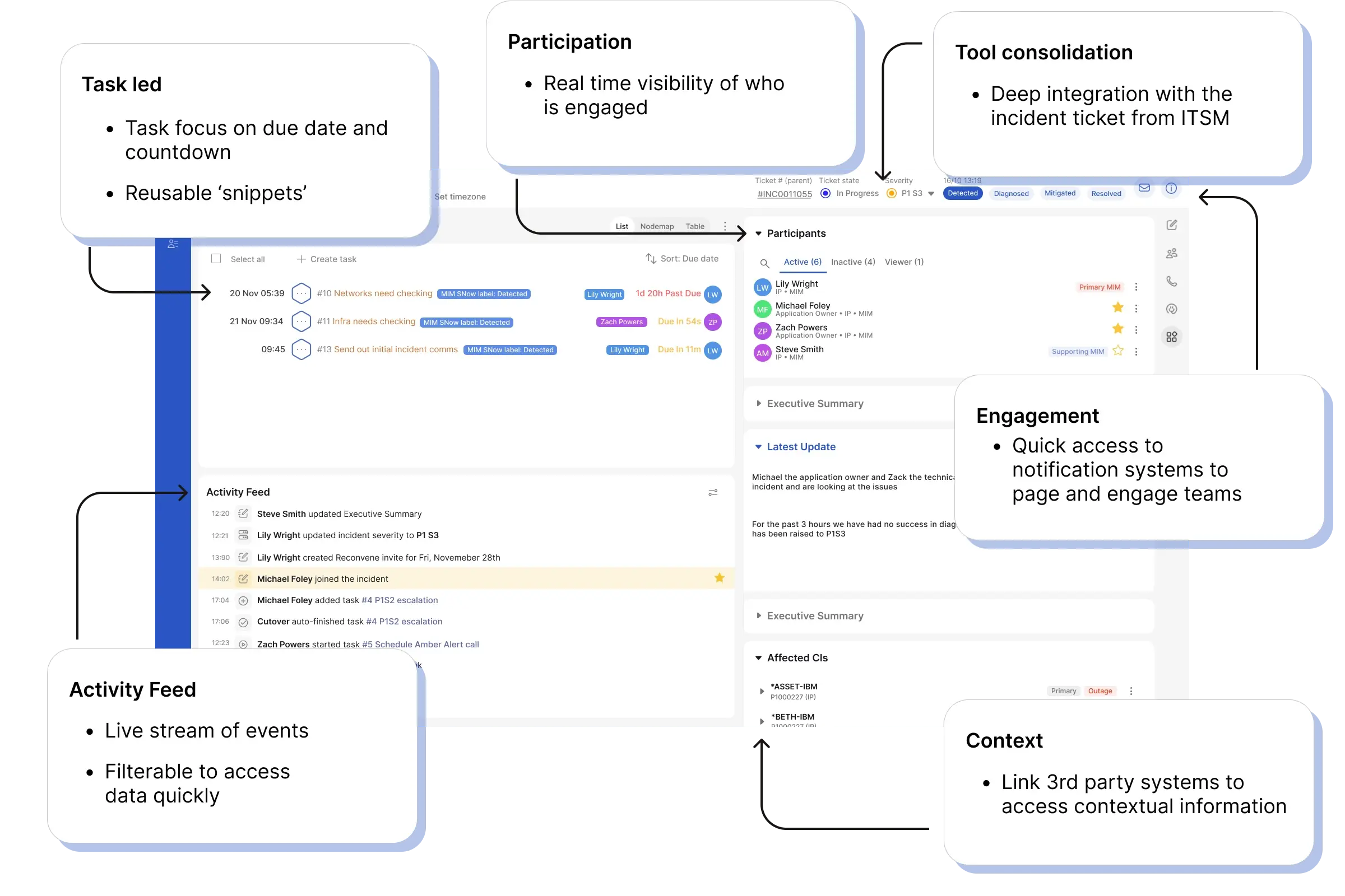 - Live dashboards for incident tracking and resolution status