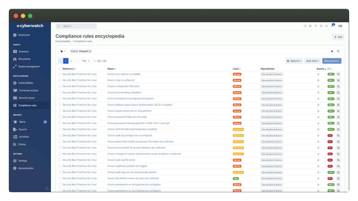 Use standard market repositories, or create your own compliance rules Explore our rules encyclopedia to choose the most relevant repositories for your needs, or create your own compliance rules using our customization tools.