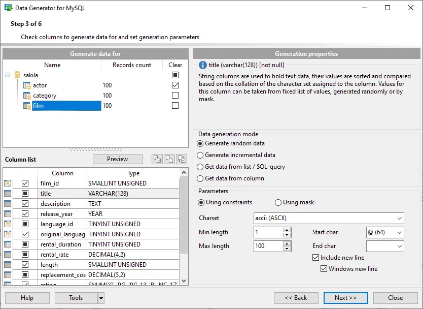 User-friendly wizard interface Guides users through the data generation process step by step.