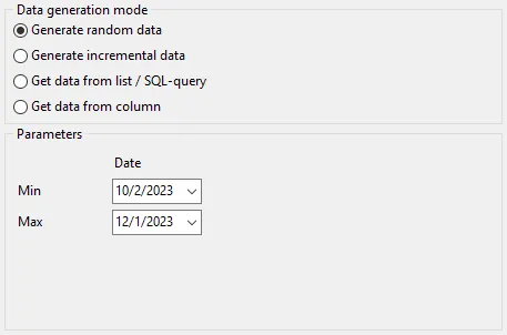 Flexible data generation options Offers list-based, random, and multi-field generation, including SQL query-based lists.