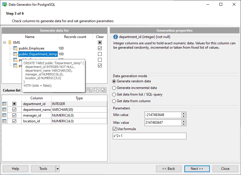 EMS Data Generator for PostgreSQL is a software tool designed to create large volumes of test data for PostgreSQL database tables. It enables users to simulate production environments by generating data with customizable parameters, supporting a wide range of PostgreSQL data types, and offering both graphical and command-line interfaces. The tool can generate data for multiple tables simultaneously, maintain referential integrity, and allows users to save and edit data generation scripts without executing them directly on the server.