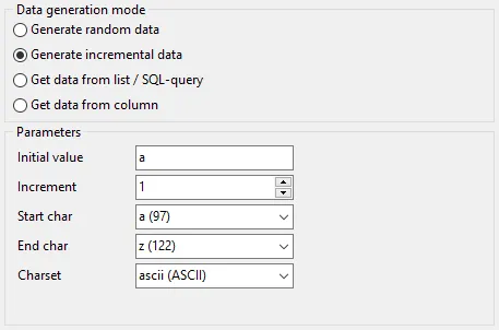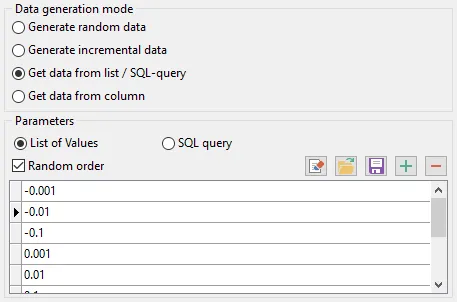 Flexible data generation methods Supports random, list-based, and mask-based data generation, and can use SQL query results as value sources.