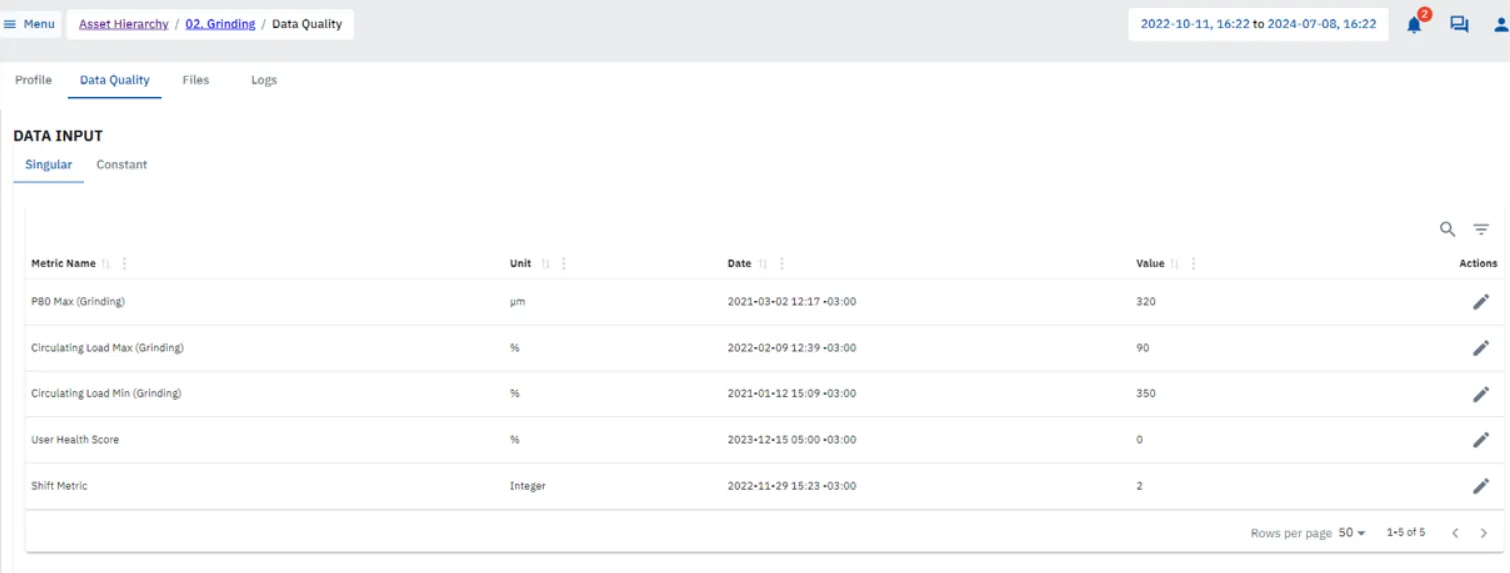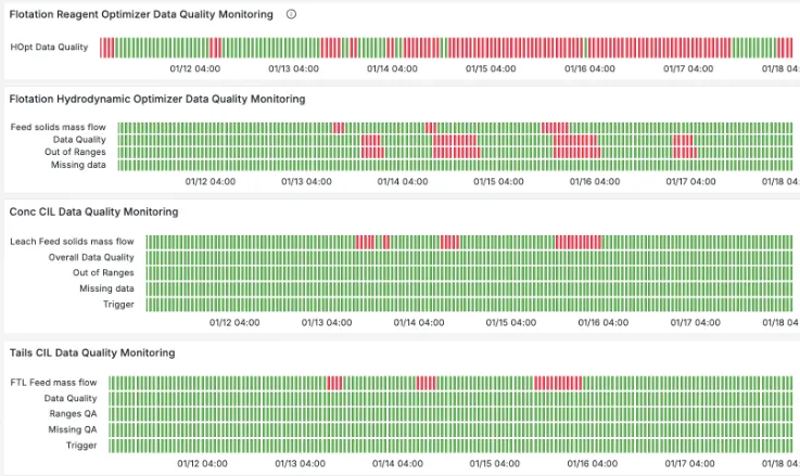 The IntelliSense.io Data Quality Model is a software module designed to ensure the reliability and accuracy of industrial data used in mining and processing operations. It filters multi-resolution data using a combination of statistical and practical methods, allowing only high-quality inputs to be used in analytics, modeling, and operational decision-making. The module provides real-time monitoring of data quality status, enabling operators to quickly identify and address issues. It supports spatial-level investigation for in-depth analysis, particularly during block model visualization, and integrates with the broader IntelliSense.io platform to maintain data integrity across the value chain. This approach helps prevent the propagation of errors, supports compliance, and underpins trustworthy process optimization and reporting.