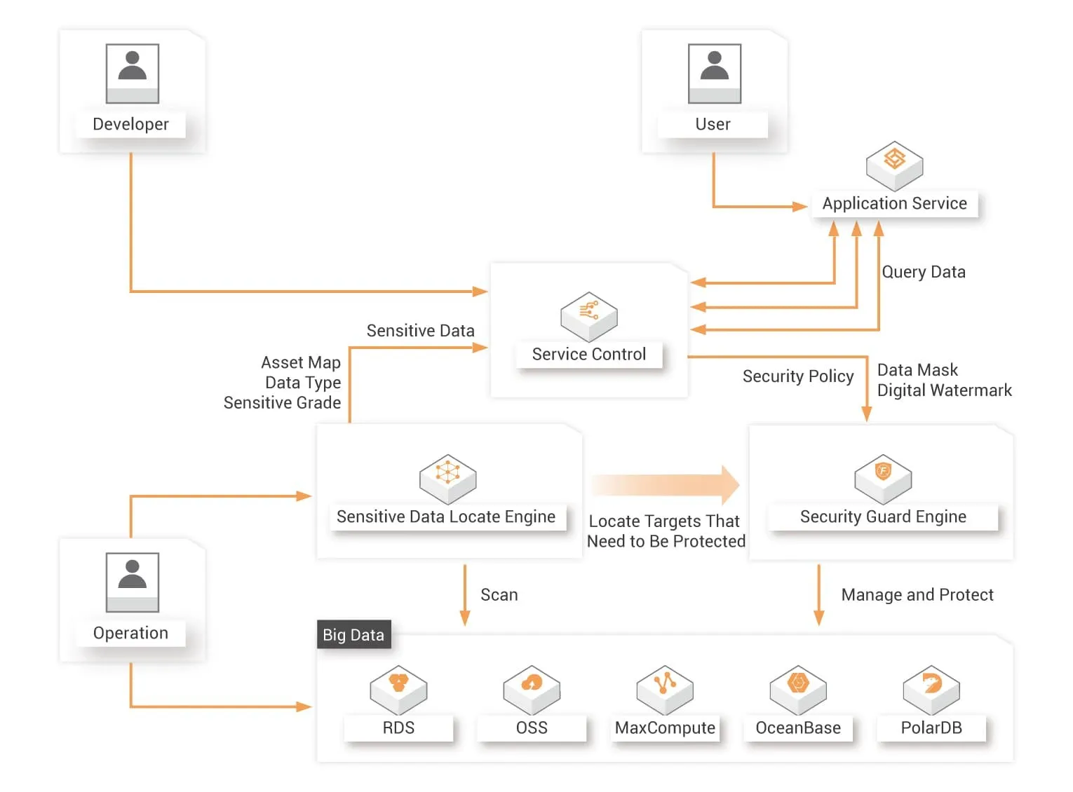 - DSC protects the data in diversified data sources on the cloud. You can manage data security in a centralized manner since mainstream databases and different types of big data services are supported.