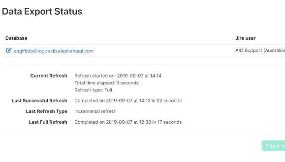 Import all the data from Jira Cloud into your relational database. Full or incremental refreshes can be triggered on-demand as well.