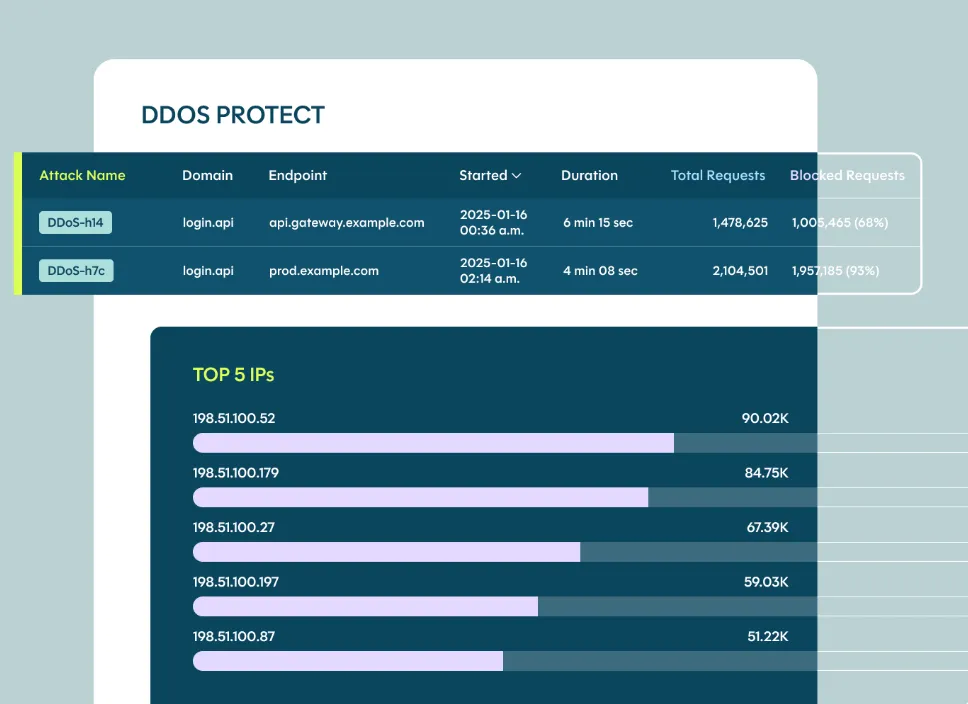 - Instant Detection & Mitigation: Blocks the 20% of L7 DDoS threats that bypass CDN security, ensuring continuous protection for apps and APIs.