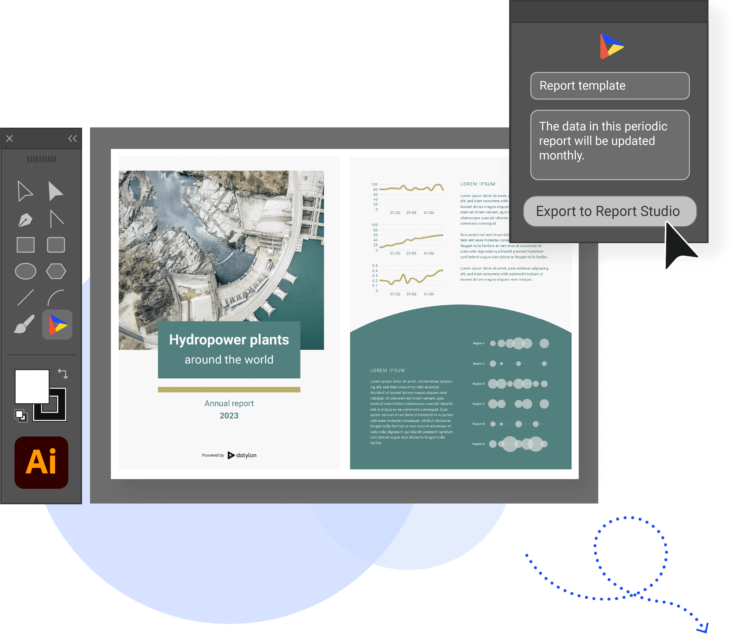 Designer workflow with Datylon for Illustrator Design-first approach for advanced charts and data visualizations.