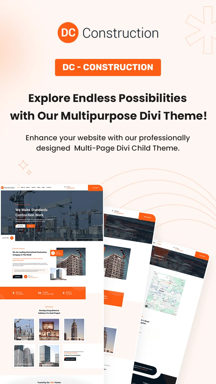Divi Construction is a professional and modern Divi child theme designed for construction companies, builders, and contractors. It features a multi-purpose and multi-page layout, making it easy to build a full-featured website for your business. The theme is fully built with Divi modules, allowing for easy customization without coding. It also includes a prebuilt global header and footer, ensuring a consistent and professional look across all pages. With a clean design, responsive structure, and user-friendly features, this theme helps you showcase your services and projects effectively.