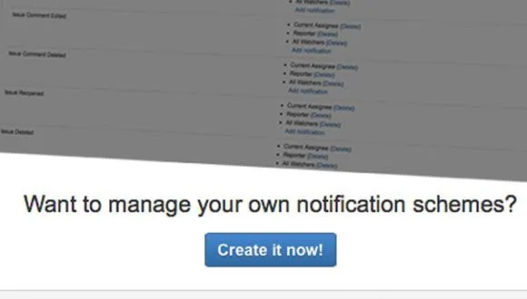 Project administrator friendly At any time a project administrator can "branch" their notification scheme and edit it to fit their needs. If they want to return to the global notification scheme, it's just one simple button click. Administrator friendly