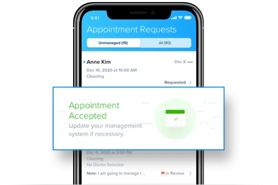 Instant Notifications Push alerts for appointment requests, confirmations, and texts.