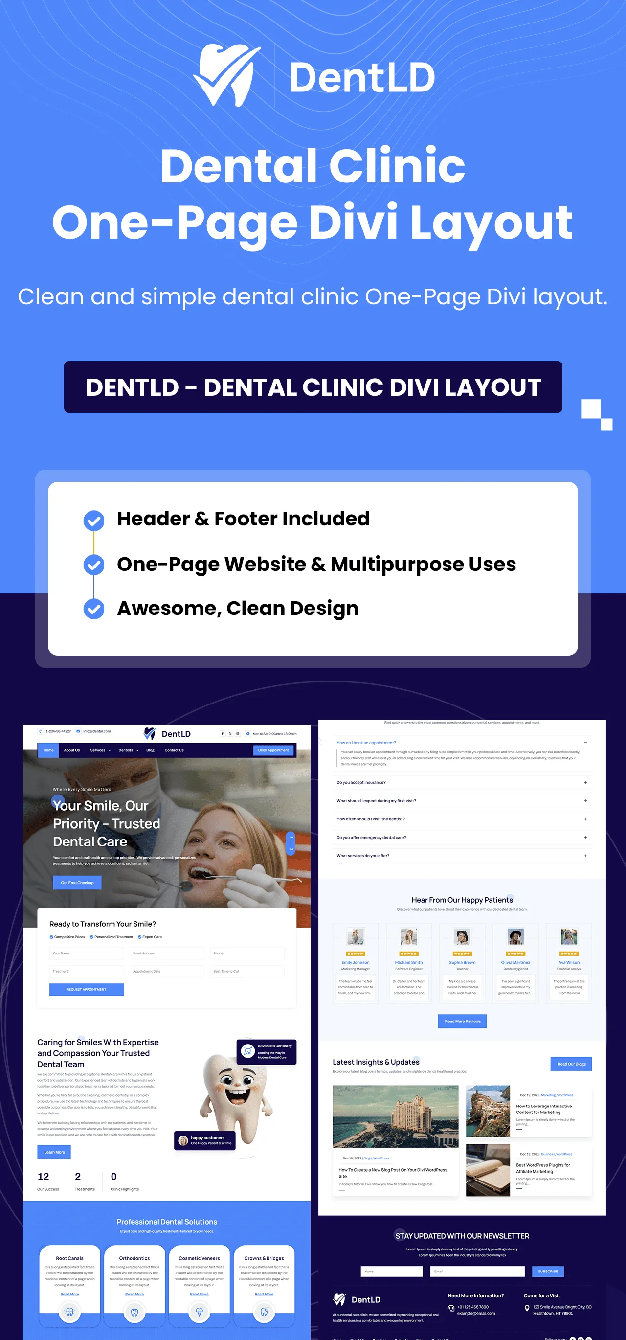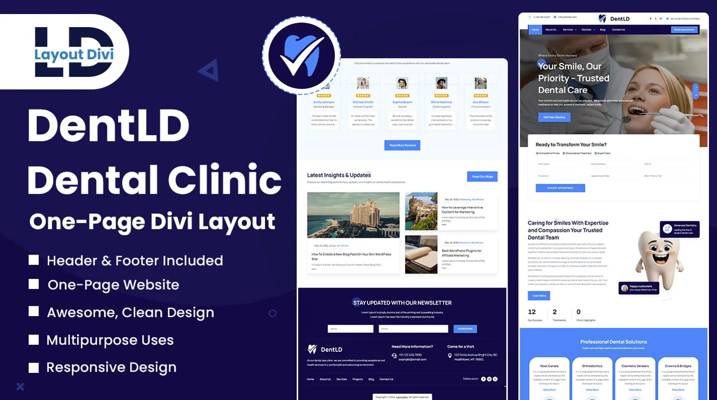 Create a stunning online presence for your dental clinic with our One-Page Dental Clinic Divi Layout.