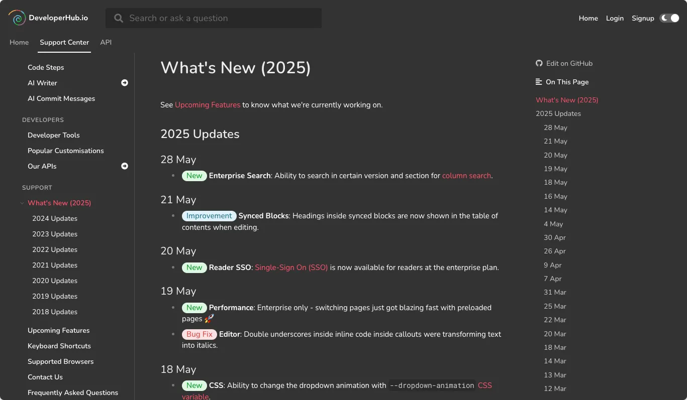 DeveloperHub is a cloud-based documentation platform designed to help startups and enterprises create, manage, and publish customer-facing documentation with ease. Whether you're building API references, user guides, changelogs, or landing pages, DeveloperHub offers a unified portal that supports collaboration, customization, and automation. The platform is trusted by companies across industries—from logistics to gaming—for its intuitive interface, powerful features, and seamless integration capabilities.