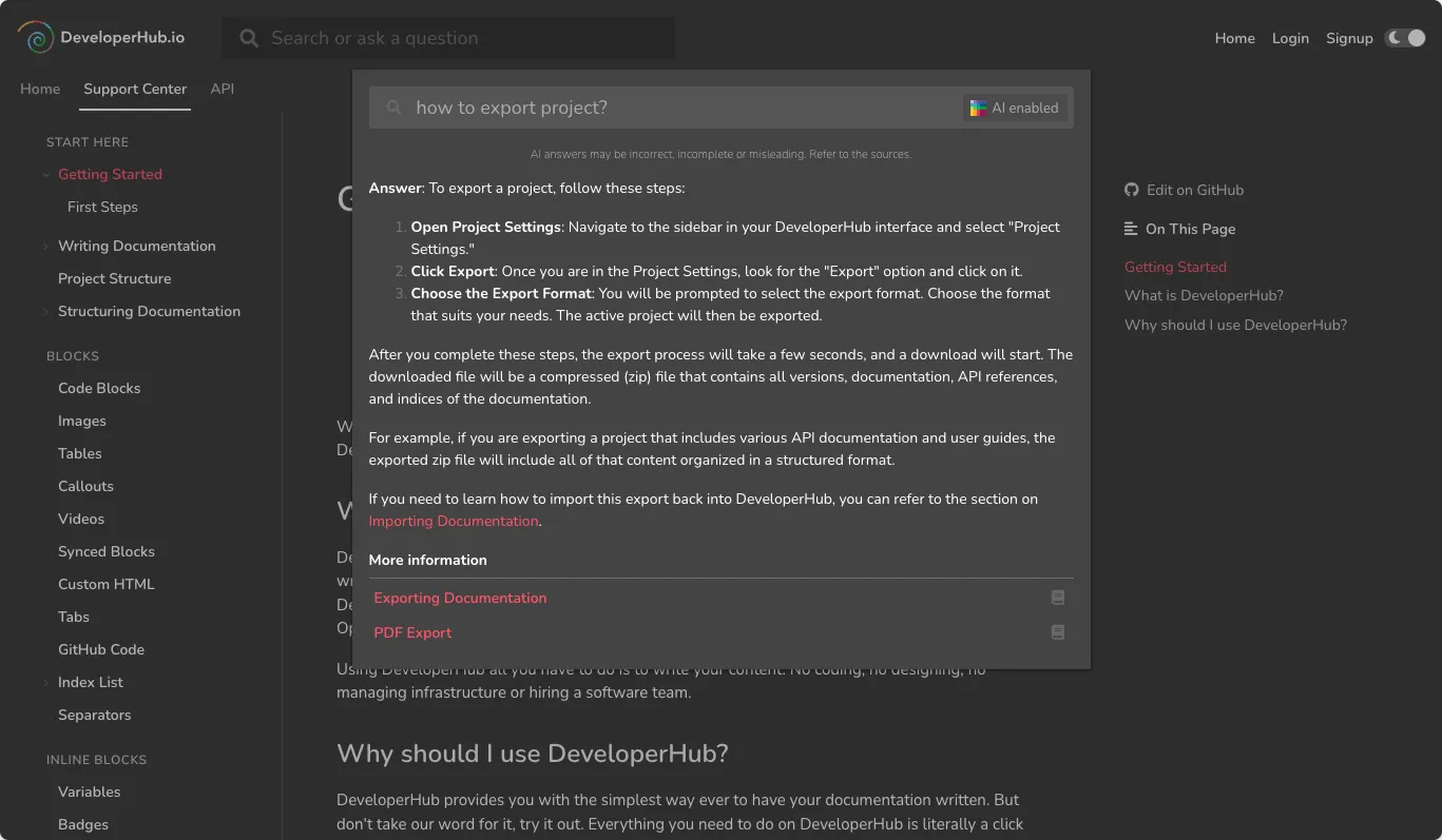 - Faster Content Creation: Teams report writing 3x faster using DeveloperHub’s modern editor.