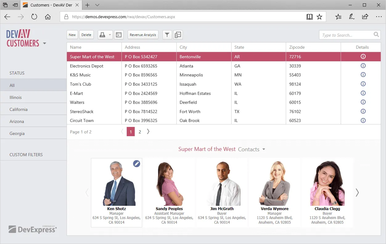 - Sorting, filtering, grouping, and paging