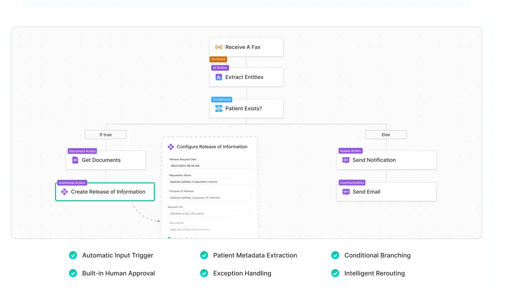 - Use an intuitive drag-and-drop builder to create complex workflows with ease. Precisely recreate your healthcare use cases without any compromises.