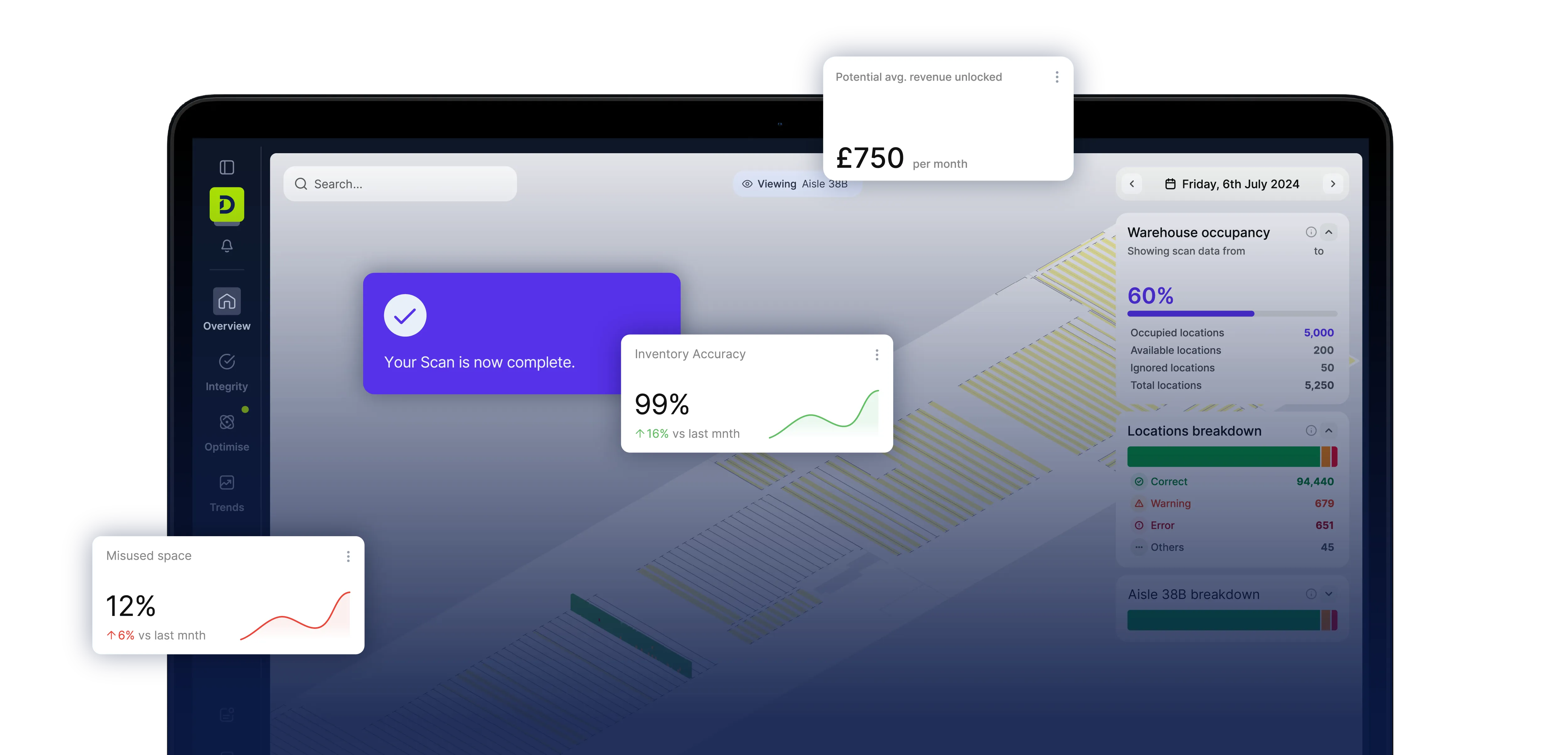 DexoryView is an AI-powered warehouse intelligence platform that combines autonomous robotics with real-time data analytics to deliver complete visibility, inventory accuracy, and operational optimisation. It creates a live digital twin of the warehouse, enabling businesses to monitor, manage, and improve inventory health, space utilisation, and workflow efficiency without infrastructure changes or manual intervention.