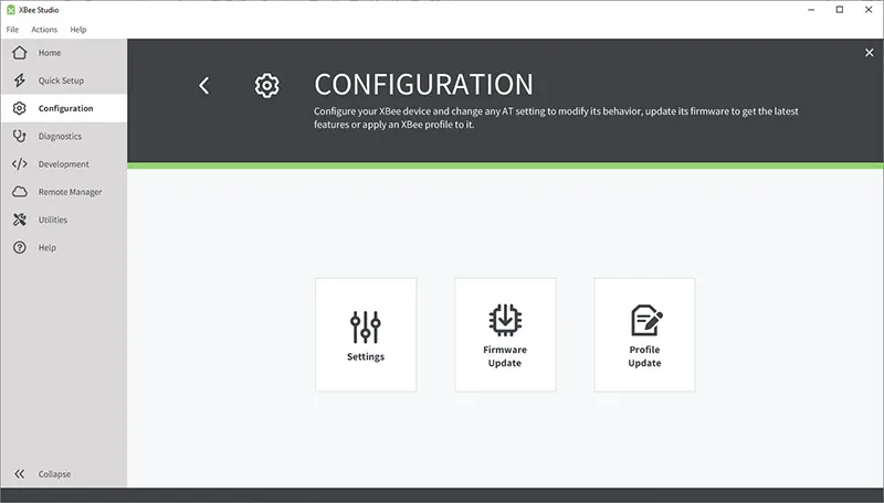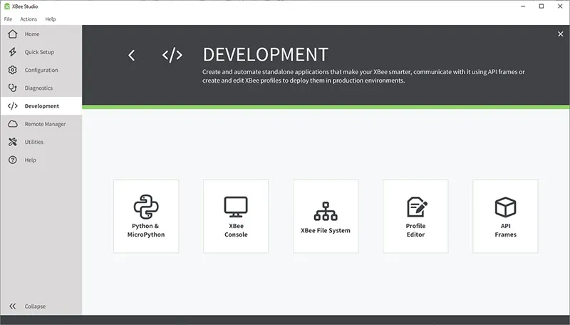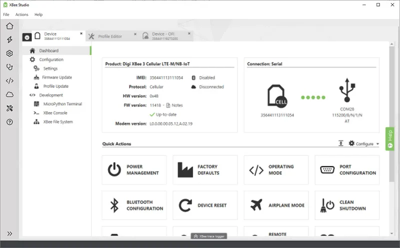 - Access a range of tools: Use embedded tools to perform operations like creating Digi XBee profiles or recovering your devices.