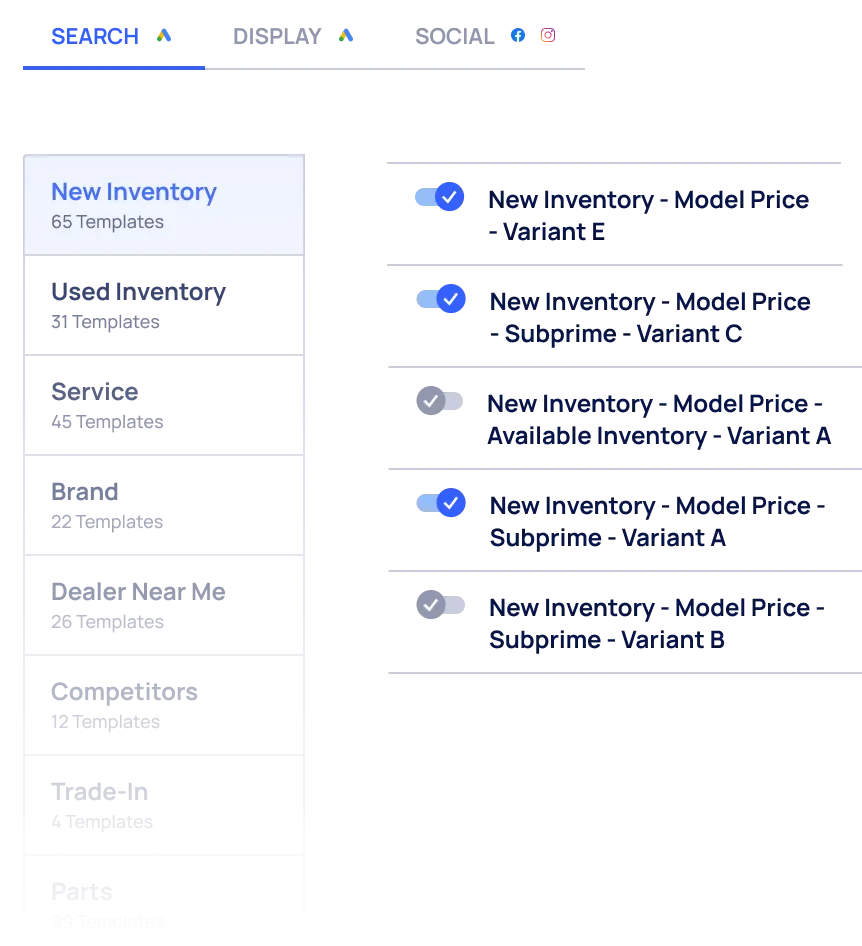 Activate your data to execute thousands of laser-focused search, social, display, Performance Max, & Demand Gen ad campaigns for your car dealership.