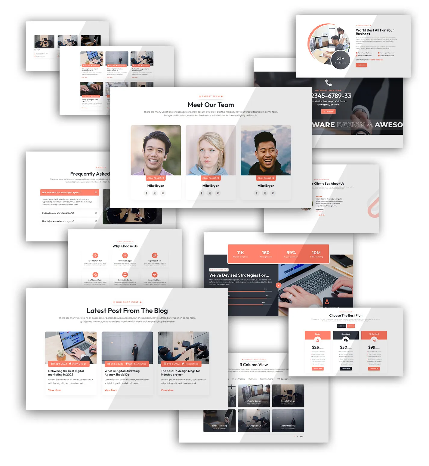 - Team & Testimonial Sections: Highlight your people and client feedback.