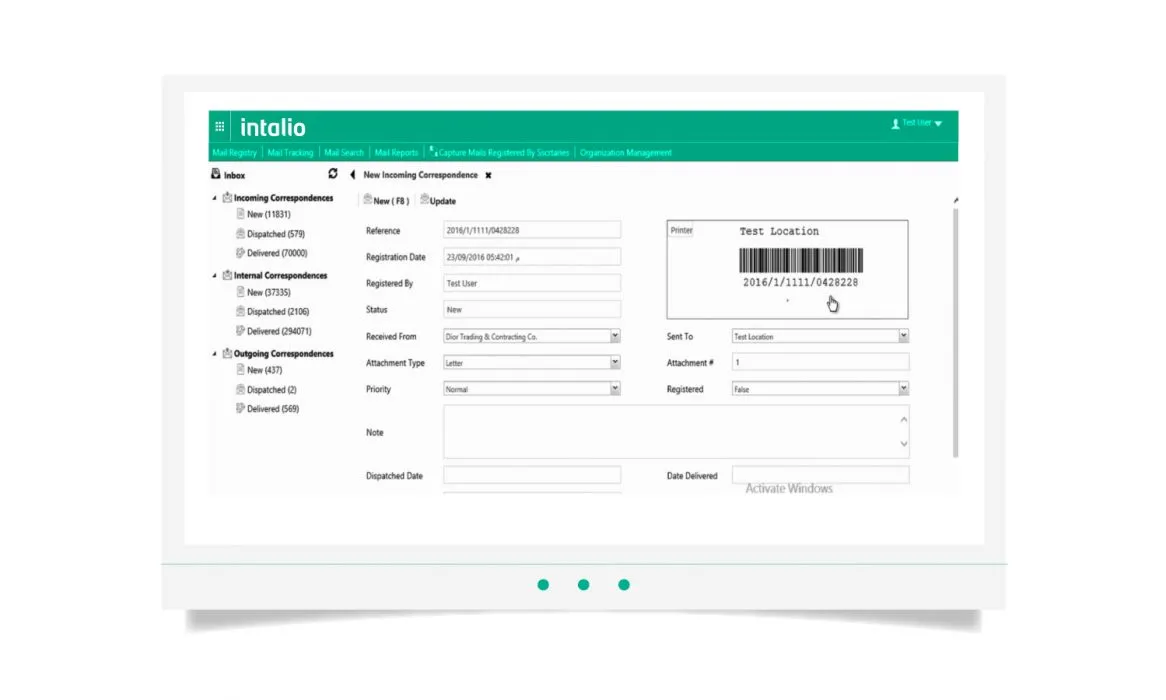 Intalio's Digital Mailroom solution automates the processing of paper-based and electronic mail, enhancing efficiency and reducing costs. It integrates advanced tracking, notifications, and barcode generation, providing real-time visibility and improving communication quality and regulatory compliance.