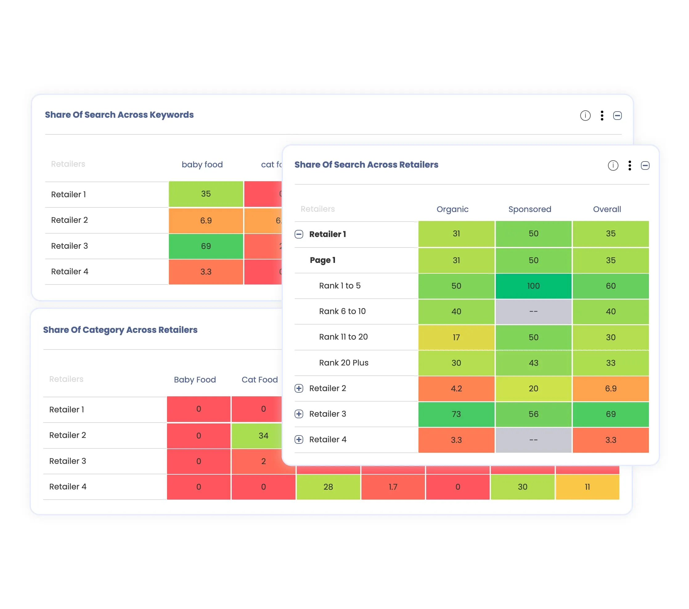 - Improve Product Visibility: Optimize share of search and content quality to enhance discoverability and engagement.