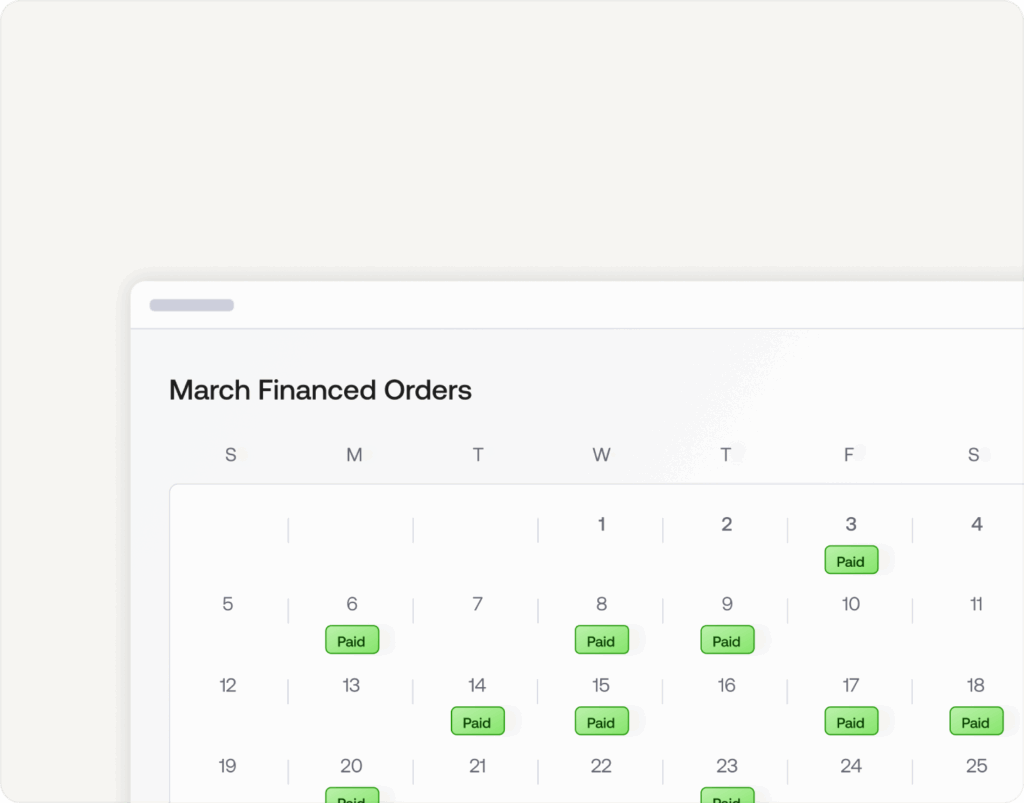 Flexible B2B buy-now-pay-later financing embedded at checkout for higher conversions and improved cash flow.
