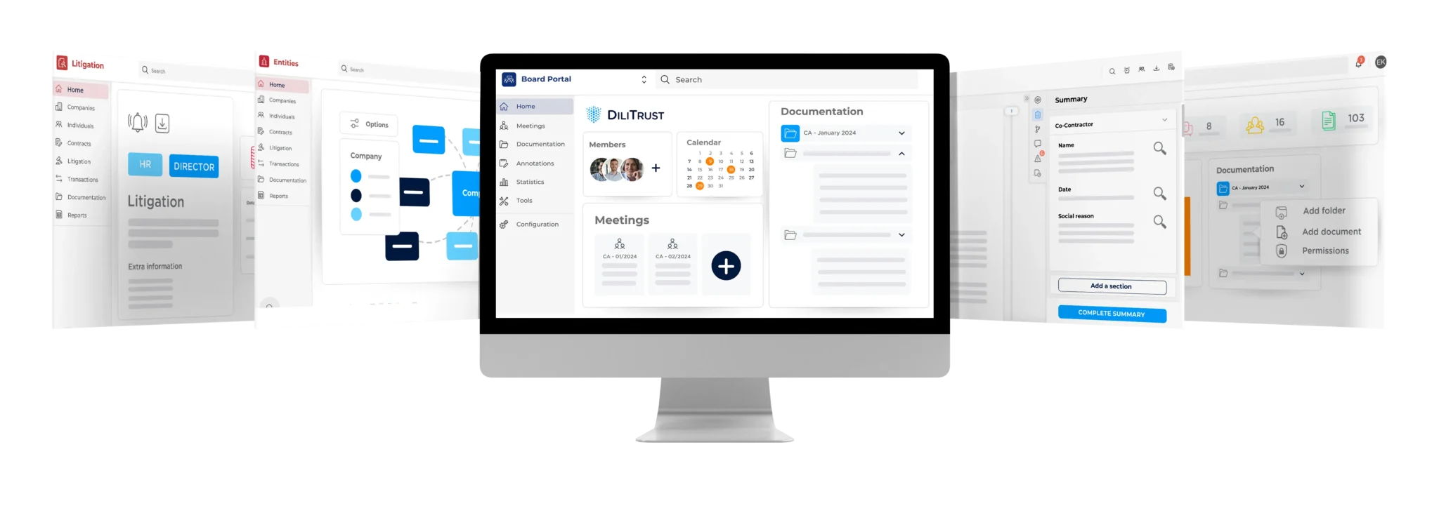 - Five Integrated Modules: Board Portal, Contract Management, Entity Management, Matter Management, and Dataroom work together in a single, secure environment.