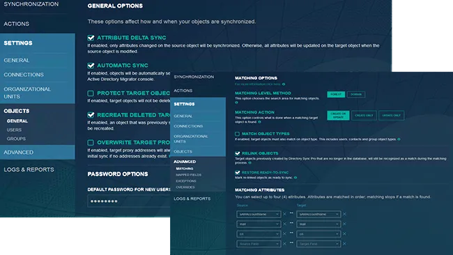 - Comprehensive Directory Sync: Sync users, contacts, mail groups, distribution lists, databases, shared mailboxes, rooms, and resources across multiple Active Directory forests.
