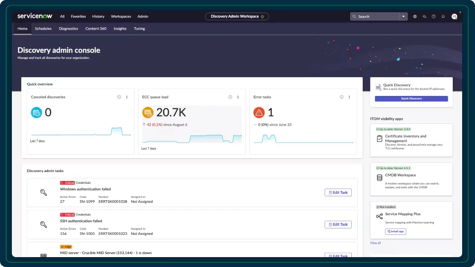ServiceNow Discovery is a powerful IT Operations Management solution that offers comprehensive visibility into an organization's IT infrastructure. It utilizes automated discovery and application dependency mapping to help businesses deliver high-performance services with enhanced efficiency and insight.
