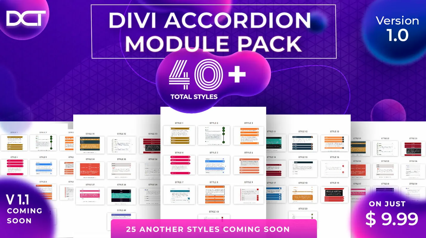 Purchase Divi Accordion Module Pack Today and get Unlimited Access of 40+ Divi Accordion Module designs access and all future updates !